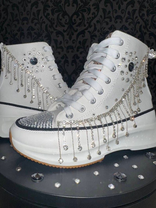 Estas preciosas deportivas únicas, las decoraciones son hechas a mano, de cadenas de cristal y piedras de cristales Swarovski. Talla 38